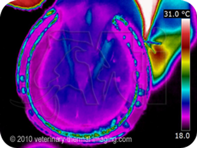 Where there is an Abscess pus will be inside the foot, particularly where it is trying to come out the coronary band. Thermal imaging allows your Vet or Farrier to have pinpoint accuracy when draining. Follow-up imaging can show when the infection has fully cleared up.