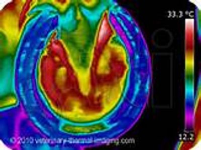 Thermal imaging can accurately locate an Abscess. Notice the heat in these thermal images below . Our thermal imaging cameras are very sensitive and can accurately map the temperature patterns on your horse's hoof allowing the detection of infected areas.